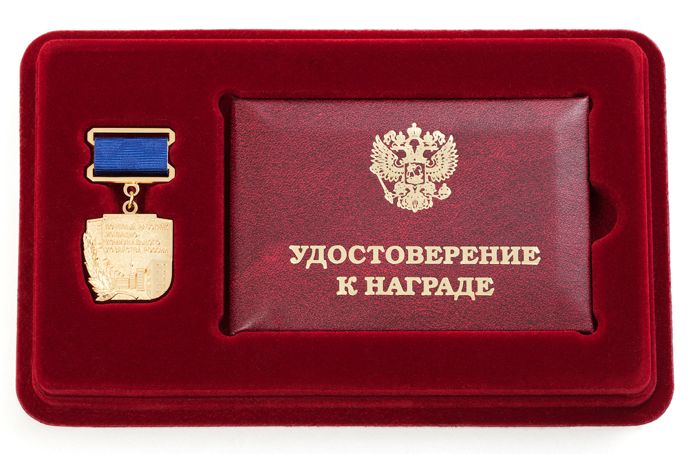 Медаль и удостоверение "Почетный работник ЖКХ России" в упаковке